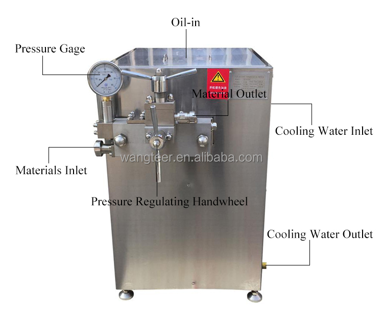 The homogenizer is a device used to homogenize/emulsify liquid materials (liquid-liquid phase or liquid-solid phase) with a viscosity lower than 0.2pa.s and a temperature lower than 80°C. The homogenizer in food processing refers to the refinement of materials under the triple action of extrusion, strong impact and pressure loss expansion, so that the materials are mixed with each other more evenly, such as the use of homogenizers in dairy processing. High-quality machines reduce the fat in milk and make the entire product system more stable. The milk will look whiter.