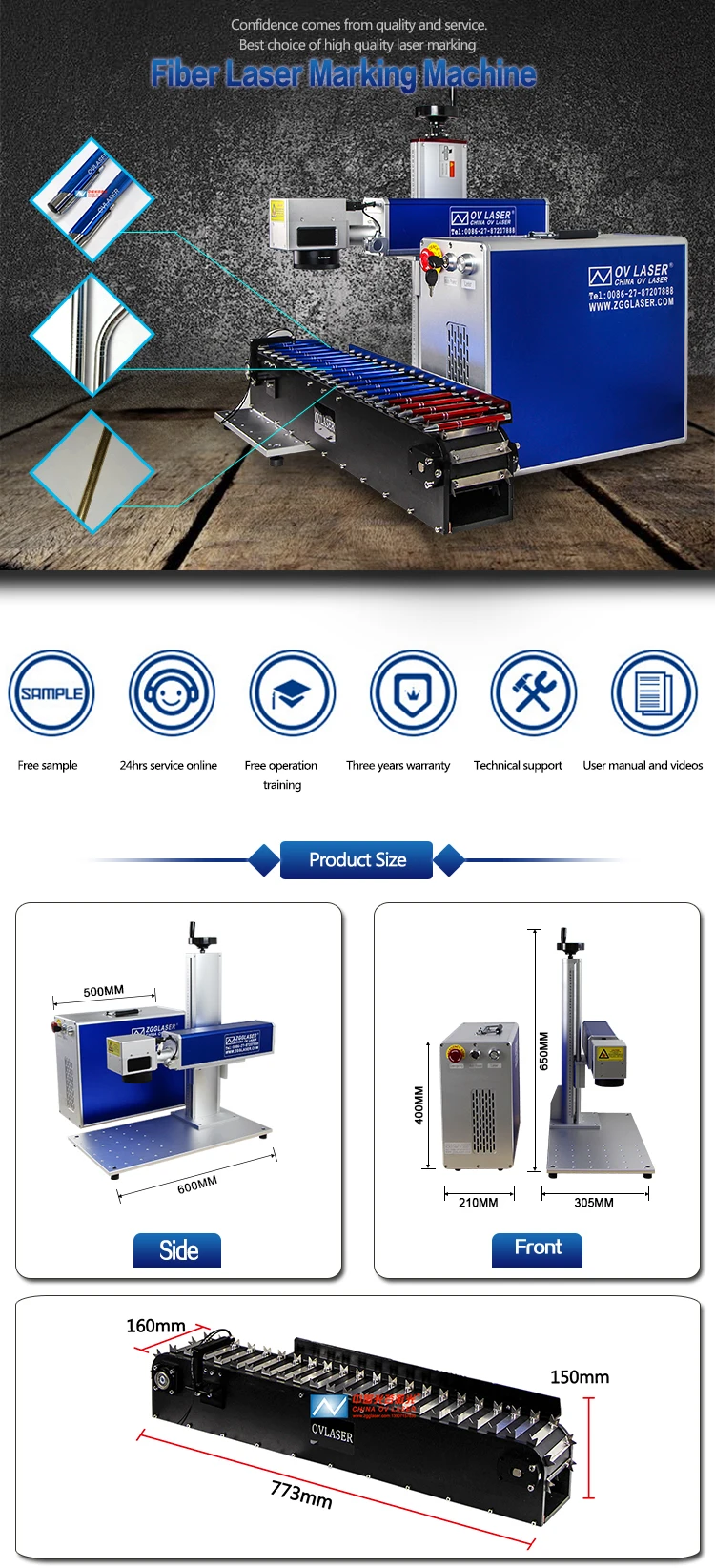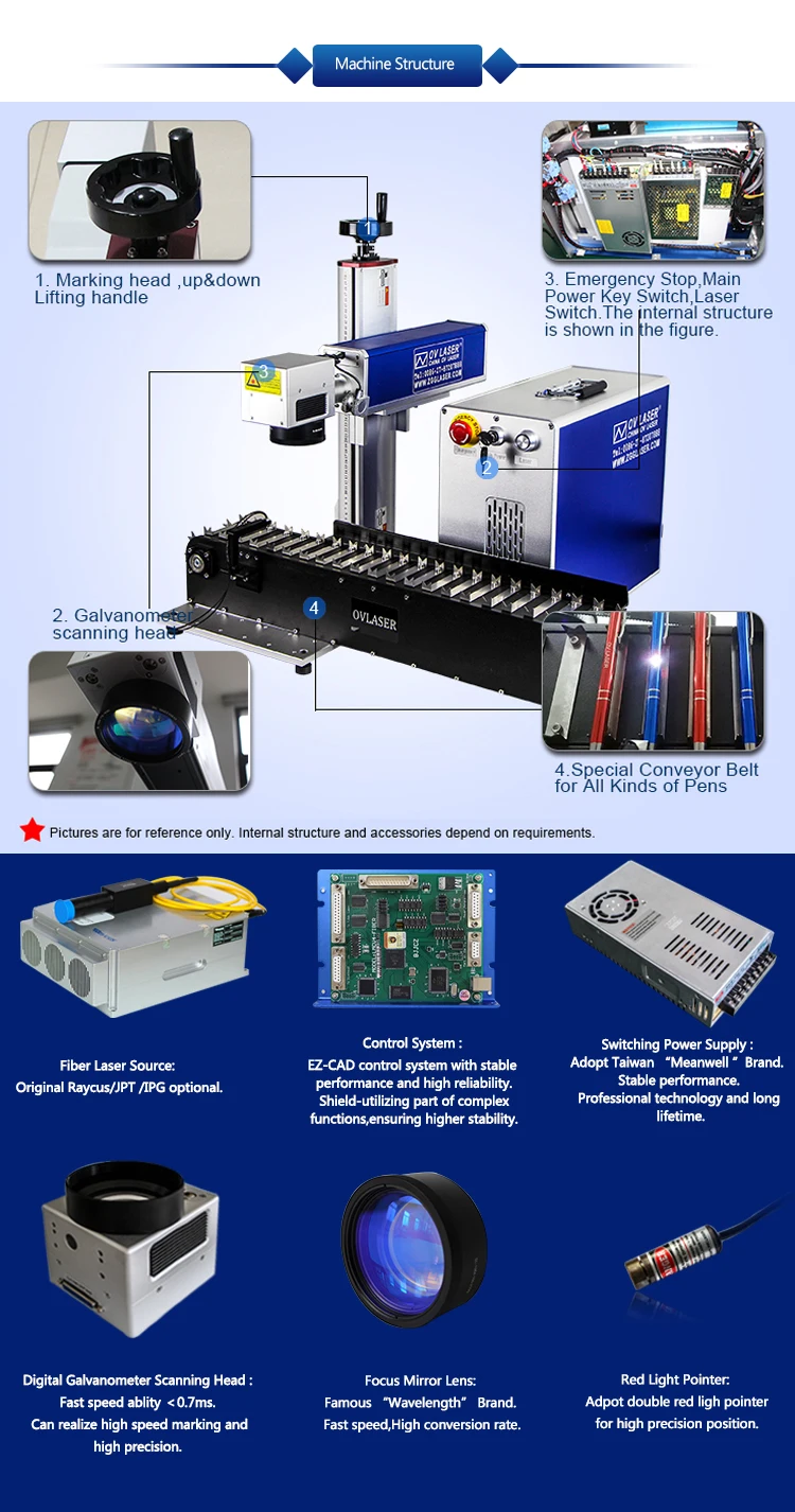 4.OV LASER also supply mopa series fiber laser marking machine.Mopa fiber laser can mark colors on stainless steel and titanium, also mark black on anodized aluminum and some plastic.