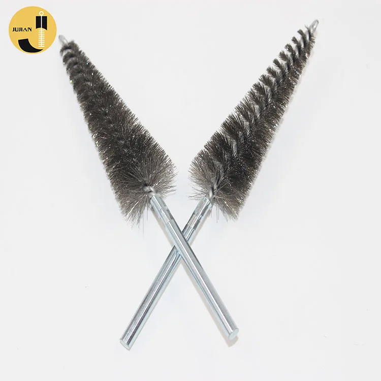 They have a long wire handle with a loop on the end and are 6″ to 16″ in overall length. Brush diameter sizes for the single spiral brush range from 1/8″ up to 2″ diameter. The brush part ranges from 1″ long to 5″ long.