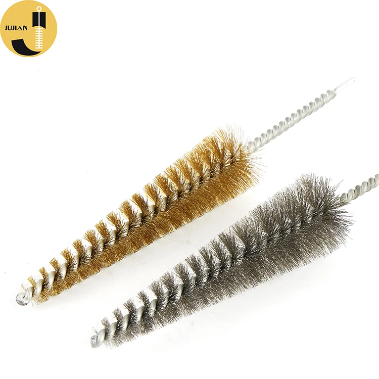 Jujian tools offers a large Brass Wire Cylinder Brush range. Brass wire is softer than high carbon steel and stainless steel,making it suitable for deburring and polishing harder metals, without scratching surfaces. Plus brass wire will not generate sparks when used against other metal surfaces, suitable for hazardous enviroments. Brass is also a conductor of electrical energy and is suitble for static reduction applications.