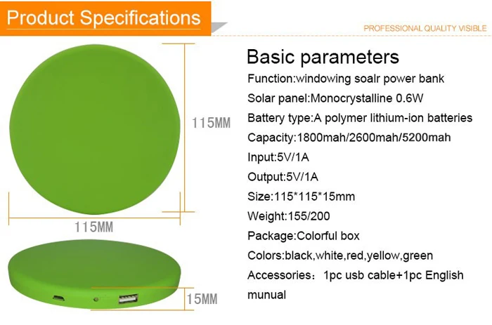 | Product name: | 5200mAh USB Solar Power Bank; | Keywords: | Mobile Charger Power Bank; |