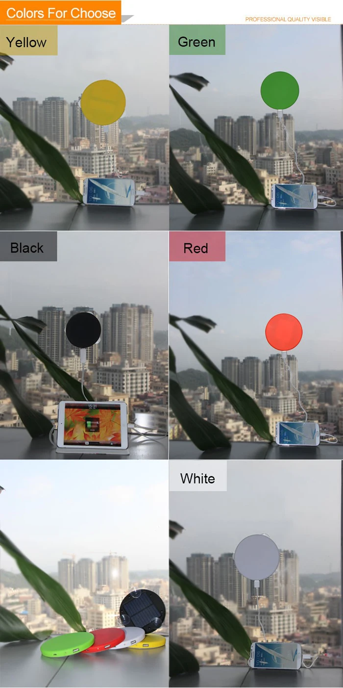 | Description | (1) Internal battery can be fully charged via adapter within 3-4hours;the led indictor is red under charging status, and turns off when fully charged. (2)It can be fully charged about 8-10 hours in the direct sunlight and charge iphone and other devices simultaneously with the USB cable.When it charges other devices the led indicator is green and turns off when there is no electric in the battery. (3)There are suction around this solar charger which enables it to be sucked into the window of the car or your home. (4) Can be applicable to mobilephones,IPOD,Mp3/4,digital camera etc;with the full powered battery. (5)Adopt intelligent chip,support overcharge/discharge/overload and shortcircuit protection. (6)When put in the glass window, make sure the glass with no dust. (7)A little wet can strengthen the cohesive force;using the wet towel to clean the glass. |