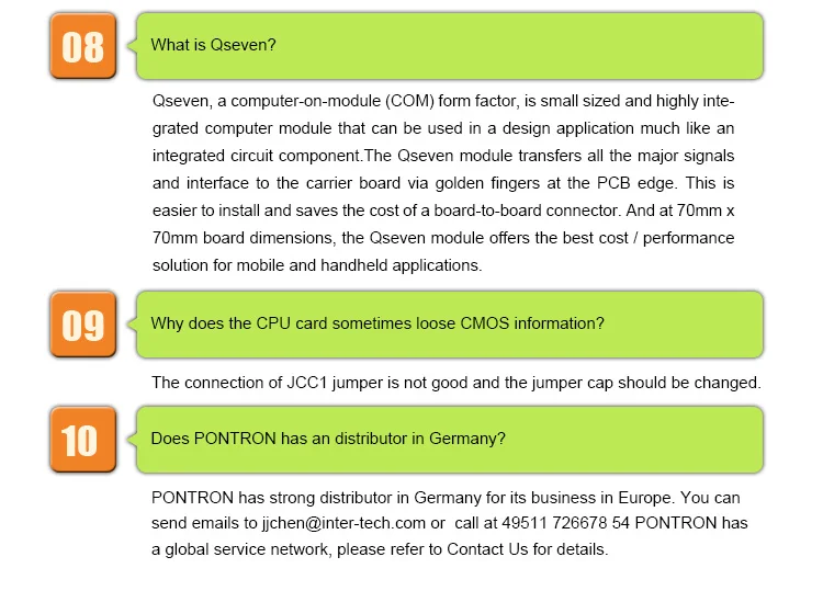 In PONTRON, we have a qualified working team which includes senior level mechanical and electronic R&D engineers, OEM product/sales manager, ISO 9001 trained manufacturing personel, and an efficient logistics department. we have an average age of 30 years old, and the average working experience in the industrial computer field is more than 7 years.