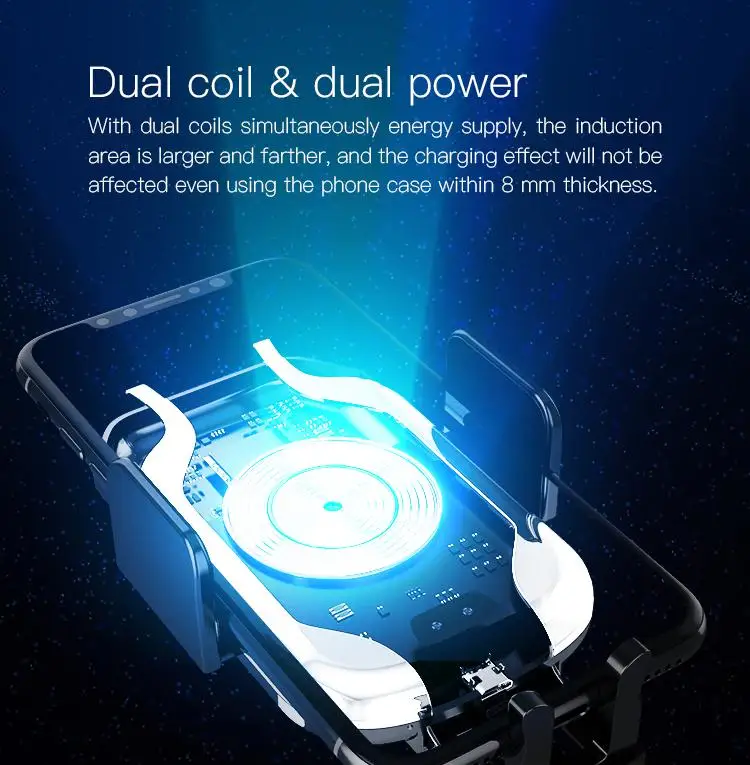 With dual coils simultaneously energy supply, the induction area is larger and farther, and the charging effect will not be affected even using the phone case within 8 mm thickness.