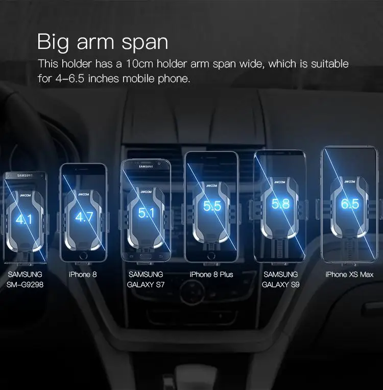 This holder has a 10cm holder arm span wide, which is suitable for 4-6.5 inches mobile phone
