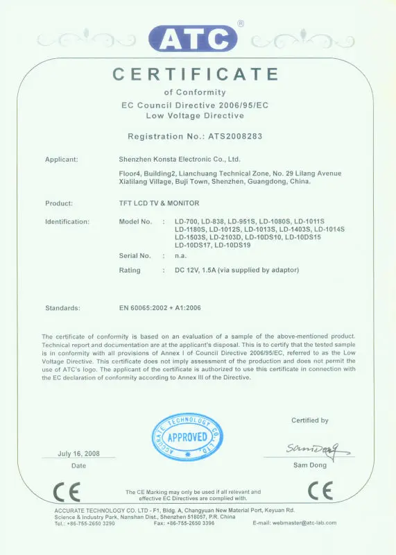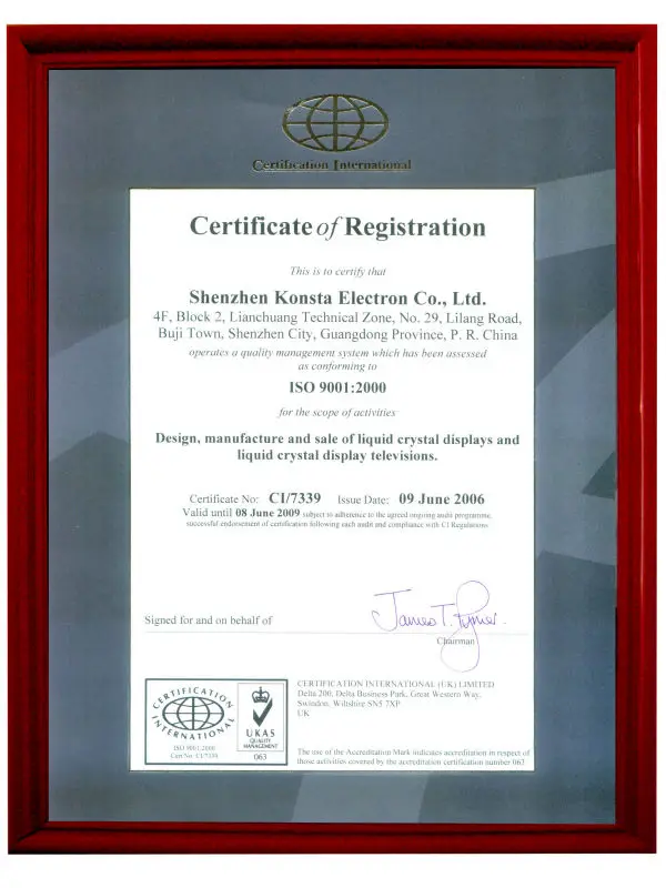 Since our company’s establishment, we’ve won high reputation according to earnest working attitude, acute sense to market, strong technology support, and sincere cooperation attitude. Furthermore, we`ve established large customer relation net after several years development. Currently, Konsta has a workshop covering over 6,000 square meters, and a team of highqualified staffs. The Research and Development, Marketing ,Production, PMC, Quality Control, Finance, Human Resource and Documents Control departments are strictly operated according to ISO9001 quality system, We do development, production and distribution independently, our TFT COLOR LCD TV sets, LCD displays have been exported to Europe, America, Asia Pacific Region and Asia, and enjoying best selling in many countries.