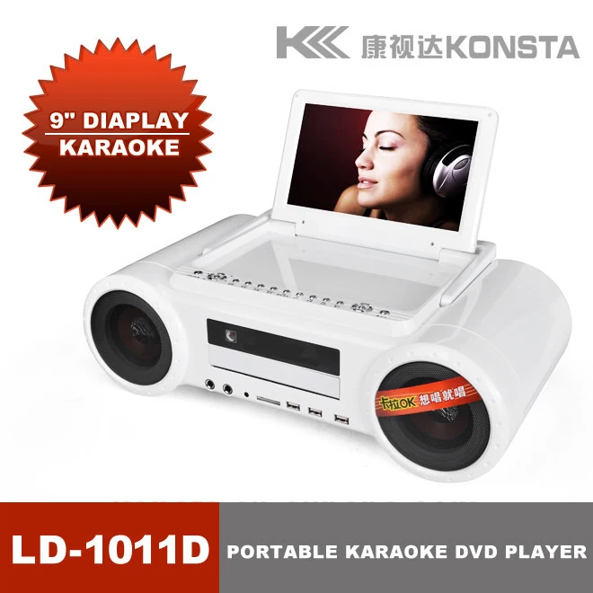 9 inch portable karaoke player Function: Can be inserted MIC, singing karaoke OK, you can record the voice of the singer; You can play movies on DVD or USB or SD cards and watch movies Can be connected to the wire when used as a TV monitor Portable, built-in lithium battery, can be used in the outdoors | |