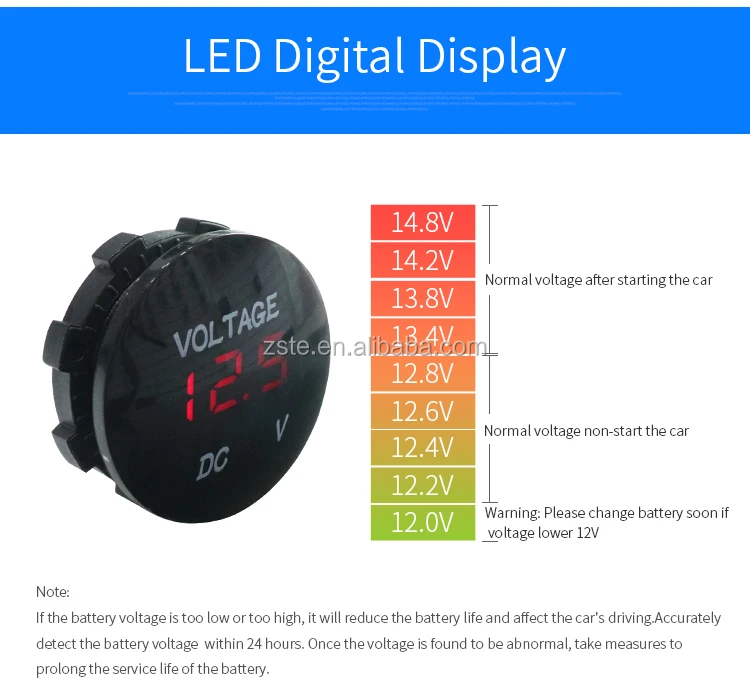 Mini size and easy to install, great for measuring voltage, Can display the status of battery: full charged and charging, low power and so on