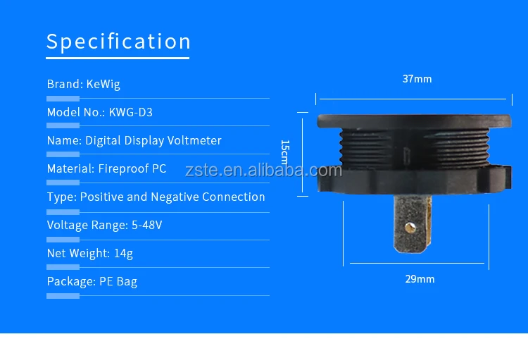 | Product name: | Car Motorcycle Boat LED Digital Display 12-24V Waterproof Voltmeter; | Weight: | 17g; |