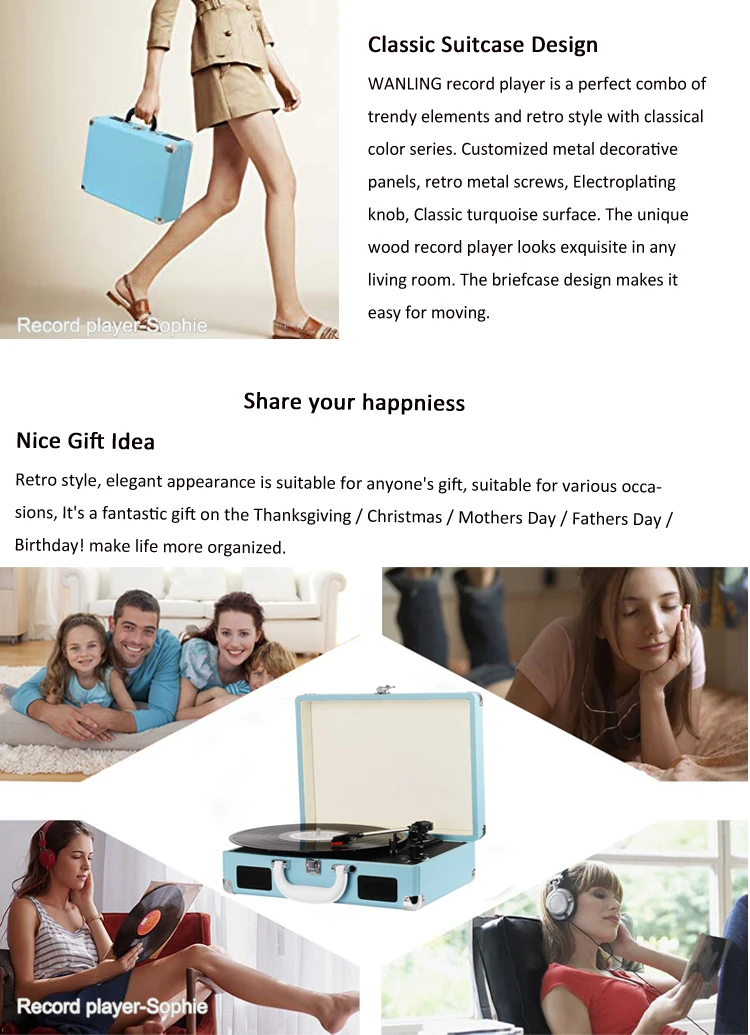 Portable Suitcase Turntable record player with Speaker Bulit-in Speaker