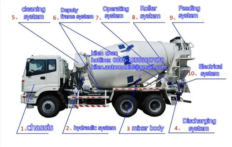 Function and structure:It adopts important parts, slchas hydraulic pump, hydraulic motor, gearbox and radiator(Italy AKG and wrestile of german). It's to churn equality, fast discharge the goods and little residual material during transport.