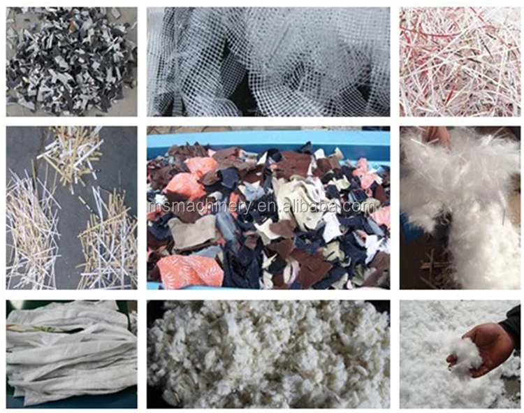 The sponge cutting machine can quickly cut up all kinds of scrap cloth, waste cotton yarn, chemical fiber, linen, leather, paper, non-woven fabrics etc. It also can cut the paper, sponge, small wood into pieces.