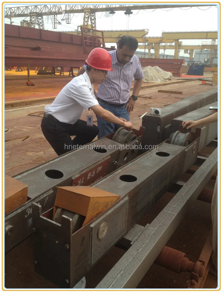 4. The electric hoist of single girder overhead crane 10 ton 5 ton ,3 ton ,2 ton runs along the lower flange of the I-steel of the girder to accomplish article hoisting;features light structure and easy installation and maintenance,and is widely used for different places for hoisting such as factories,warehouse and materials yard