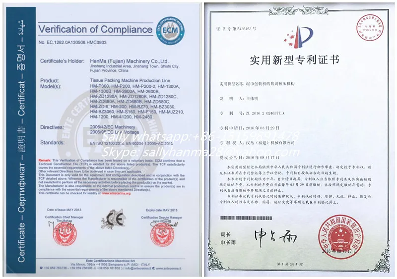 1) Main technical parameter about HM-P200 wet wipes making machinery
