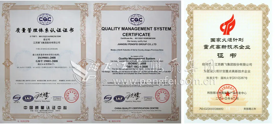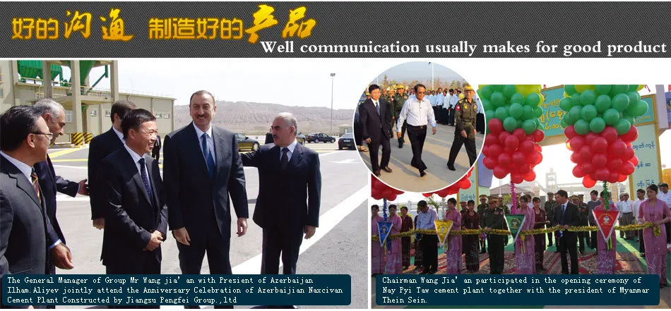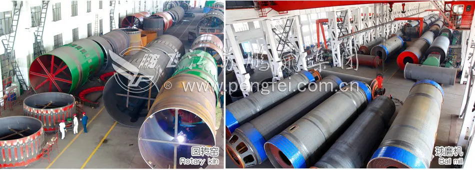 Jiangsu Pengfei Group covers an area of 350,000m2 and it has 0.82 billion RMB of total assets. There are 450 engineers and technicians. The company has the six subsidiary companies such as the mechanical plant, electronic plant, casting plant, installation plant, the new type building materials plant, etc. The company has the mechanical processing capacity of 300,000t/y; its rotary diameter and gear hobbing diameter are 10m as well as the diameter of the annealing furnace is 6.5m; the maximum hoisting capacity is 400t, so the company can meet the manufacturing requirements of the rotary kiln and ball mill below 6m in diameter.