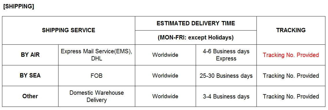 For large quantity order, We recommend cargo shipping method, instead of by-air method (DHL, EMS, etc)