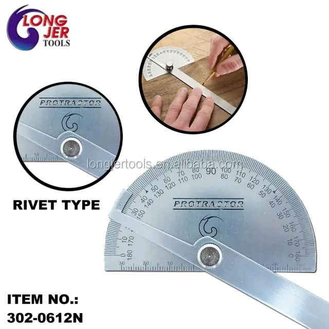| 302-0602 | 1.) Polished stainless steel construction. 2.) 200mm-ruler rivet, measures angles quickly in two directions (clockwise and counterclockwise) from 0-180 degrees. 3.) semicircle-head (round head). 4.) For measuring, marking, checking and transferring angles. 5.) Pack:@pc-polybag | USD$2.00 | 50% | USD$1.00 | 5000 |