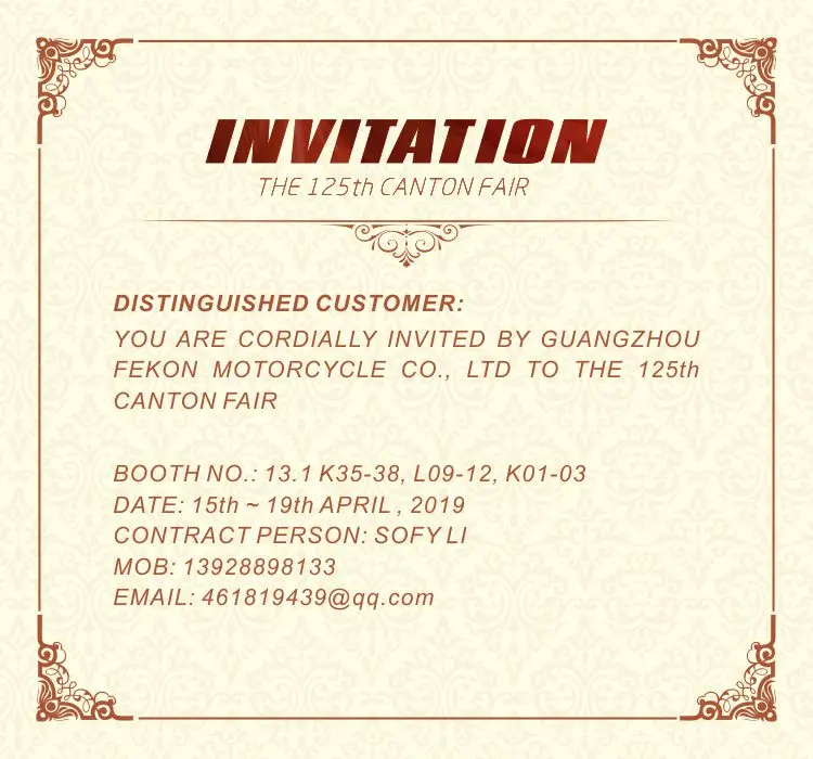 FEKON owns excellent R&D team, who developed many unique and popular models, Through their efforts, more than 20 models have reached Nation III technical standard and have gotten national approval successively. Meanwhile, they developed many new engines with big power independently, which make FEKON motorcycles with outstanding technical advantages and high cost performance.