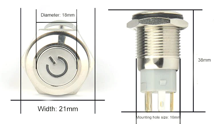| Material: | Stainless Steel; | Product name: | 16mm Metal Momentary Push Button Switch; |