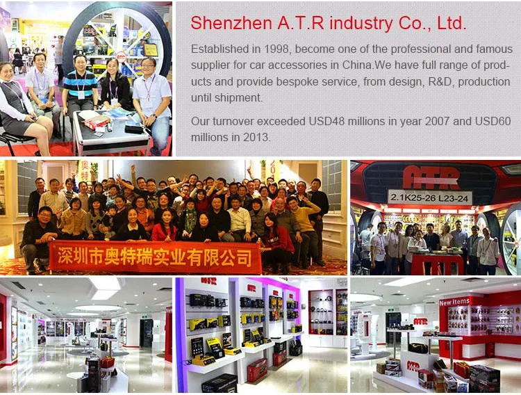 Shenzhen A.T.R. Industry Co., Ltd. provide car accerories registered brand such as "ATR" & "ECARO" in many countries,already selected by many hypermarket or supermarket like Wal-mart Argentina La anonima ,Norauto Etc.,and many other important importers.