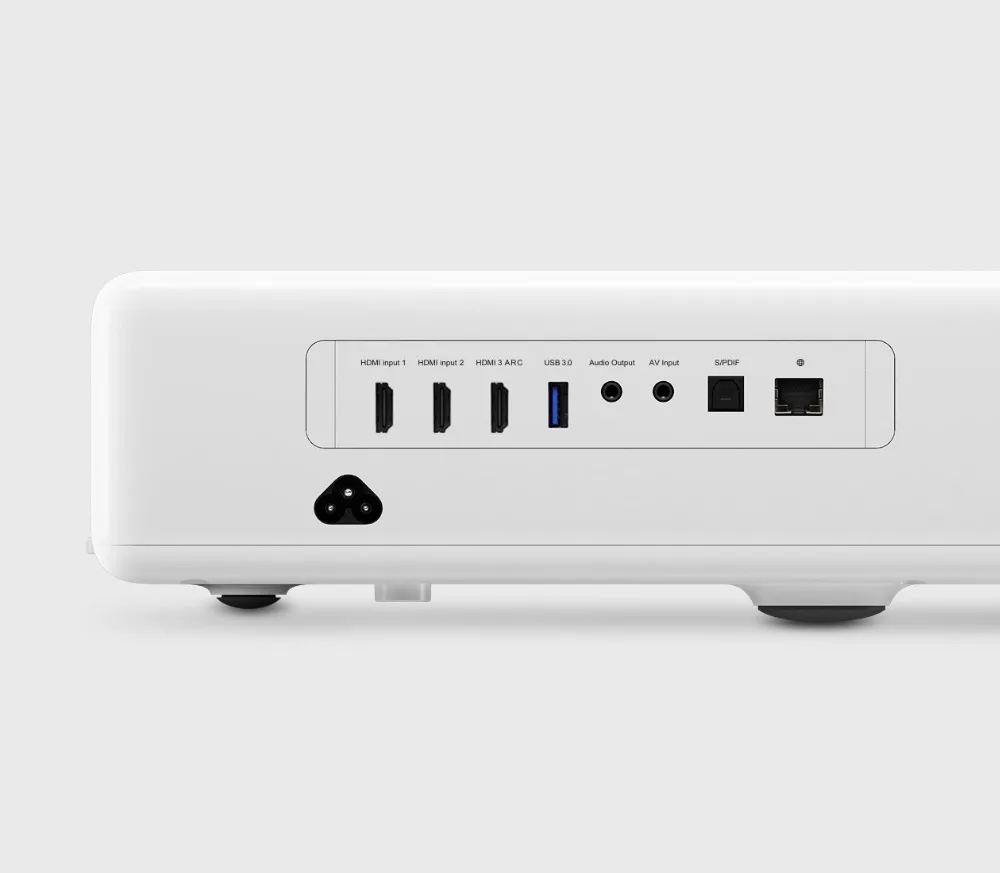| Projection | Display Tech: ALPD3.0 light source Display size: 0.47 inch DMD Contrast: 3000:1 Luminance: 5000 Lumens Native Resolution: 1920x1080 Supported Resolution(Max): 4K Color temperature: standard, cold color, warm color Color gamut: NTSC 80 - 85 percent Brightness uniformity: JBMA more than 80 percent Auto mode: Save power, eye protect Light mode: highlight, movie, normal Throw ratio: 0.233:1 Projection Methods: Ultra Short Projection Distance: 0.05 to 0.5 Meters Projecting Image Size: 80 to 150 Inches |