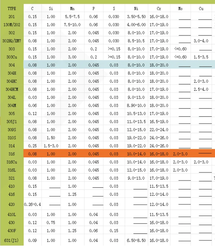 Material:SS201 304 316 2205 2520 1.4529 2507 904L