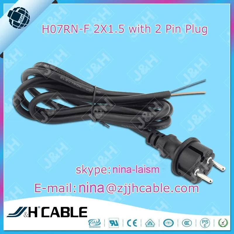 VDE Certificated H07RN-F 2X1.5MM2 With 2 Pin Plug Extension Power Cord
