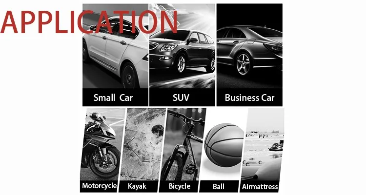 Car/Business car; SUV/MPV; Truck under 12V; Electromobile; Motorcycle; Bicycle; kayak; Ball; Airmattress