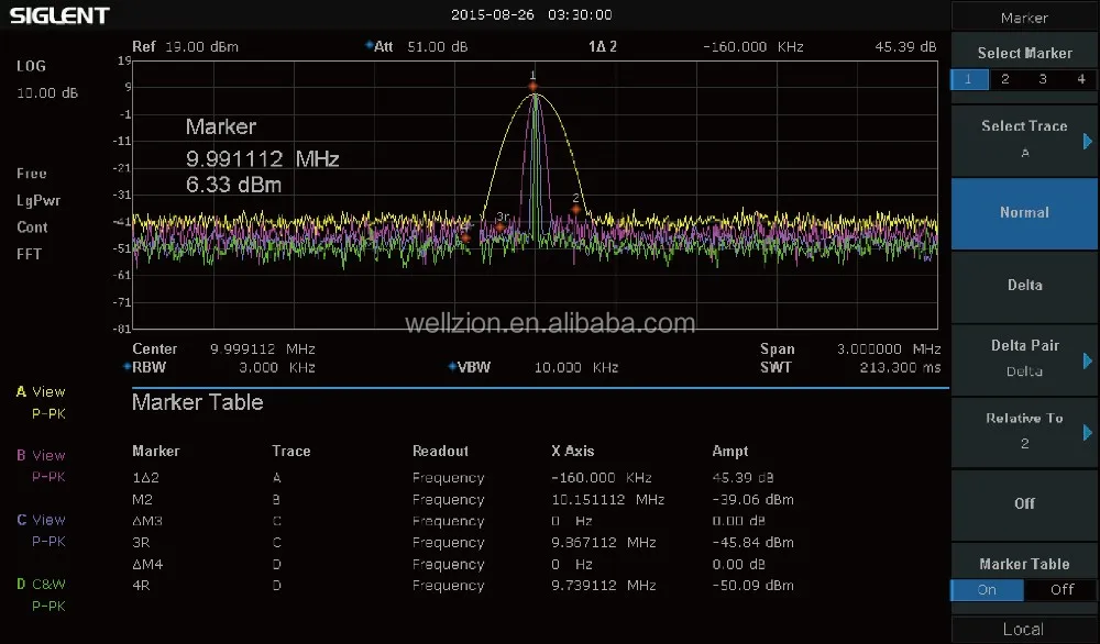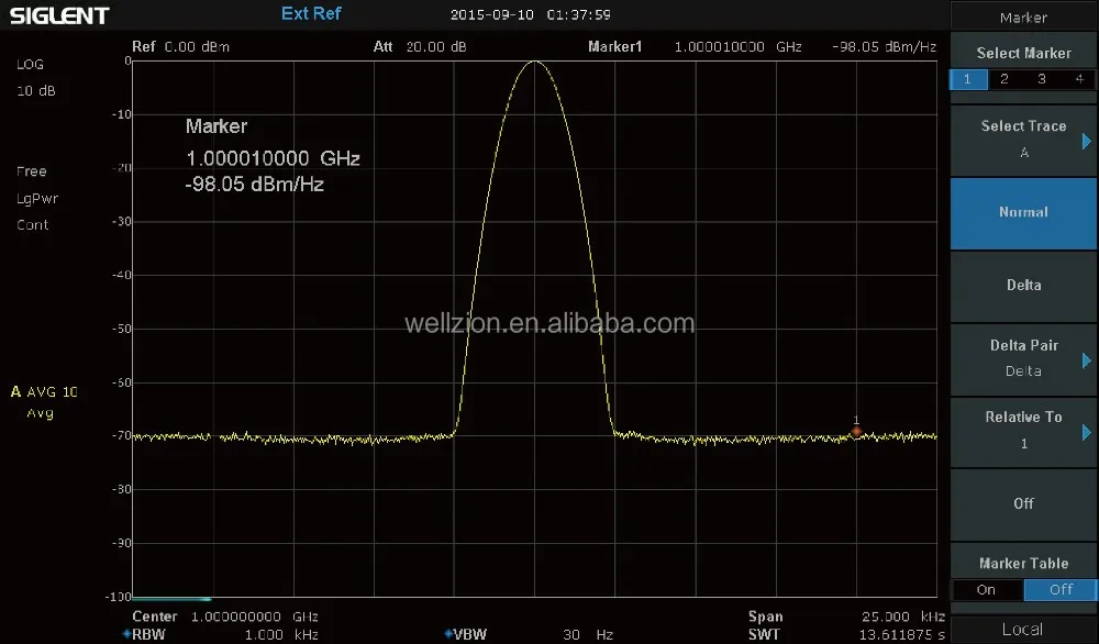 Phase noise -98 dBc/Hz@1 GHz, offset 10 kHz Support four traces and cursors independently