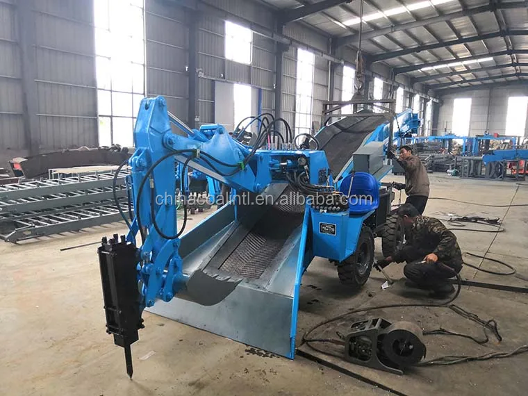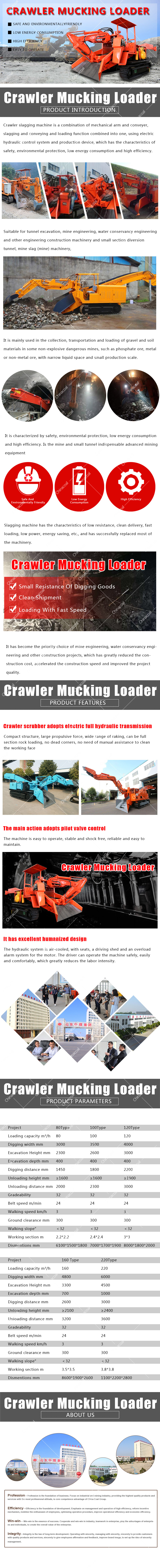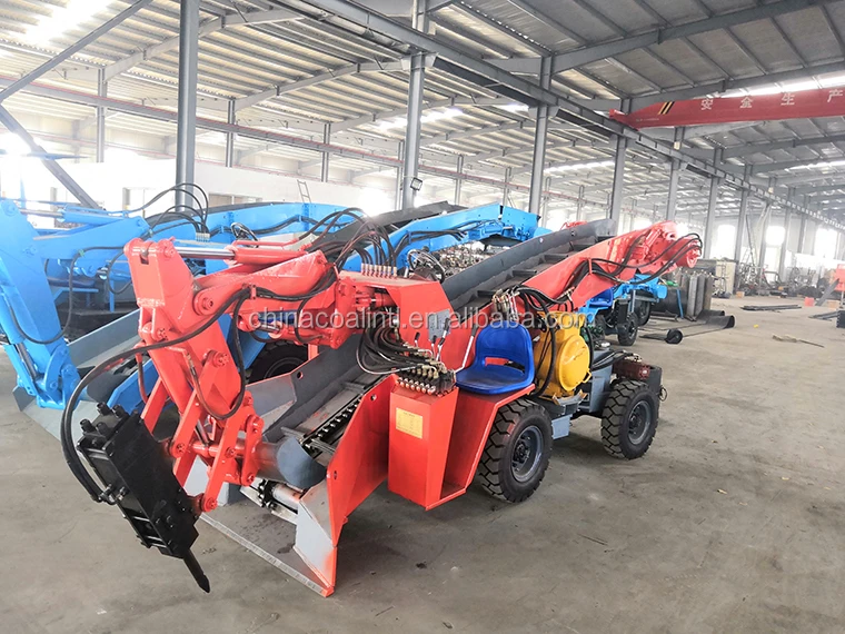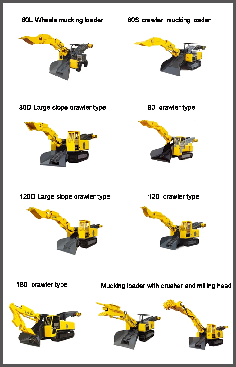 Mucking loader is also called excavating loader, integrates multiple functions including excavation, conveying, loading, running, Because of its high working efficiency, strong ability to adapt the space, less polluting to the air inside of the tunnel, it becomes a very important mechanical equipment in tunnel construction. It can be full-face loading of gravel, leaving no dead ends, do not need to manually clean up Site, you can also digging on both sides of the roadway ditch.