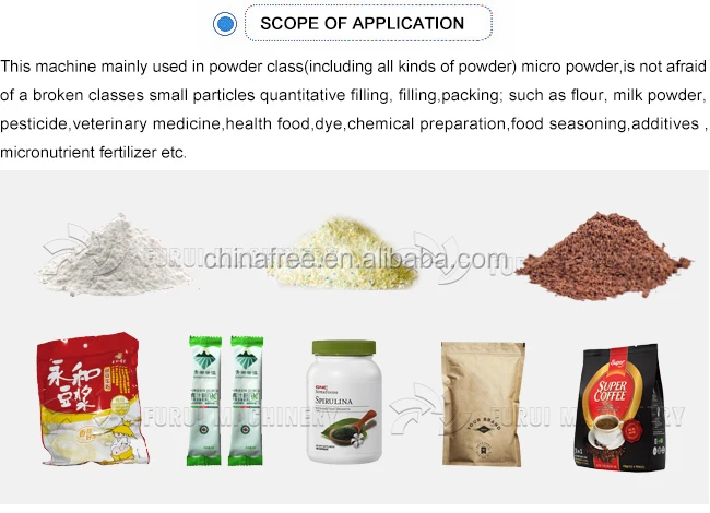 10-5000g Auger Powder Packing Machine for Flour are widely used in chemical, pharmaceutical and foodindustries. Such as raw materials, flour, milk powder, starch, sugar, additives, fertilizers, feed, plastic powder,new building materials and other industries.