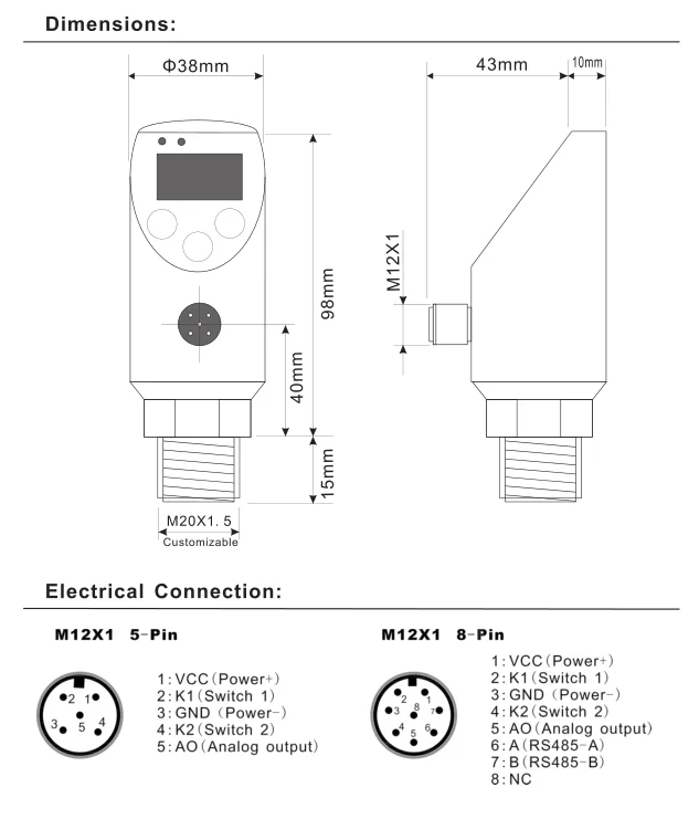 | Max. Working Pressure: | 600bar; | Pressure range: | -100KPa~60MPa; |
