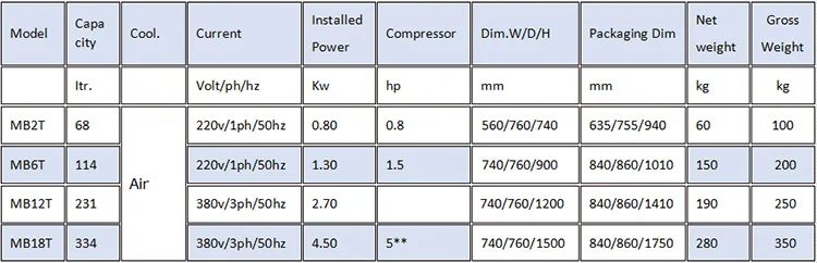 • The blast chillers can fast freezing the ice cream (or other food) and reducing the central temperature of the food to a target level very quickly.