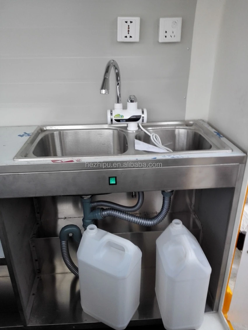 2. come with water sink and buckets , lights,socket ,outlets ,full kitchen equipment,service window and cash drawer,ready to make your money .