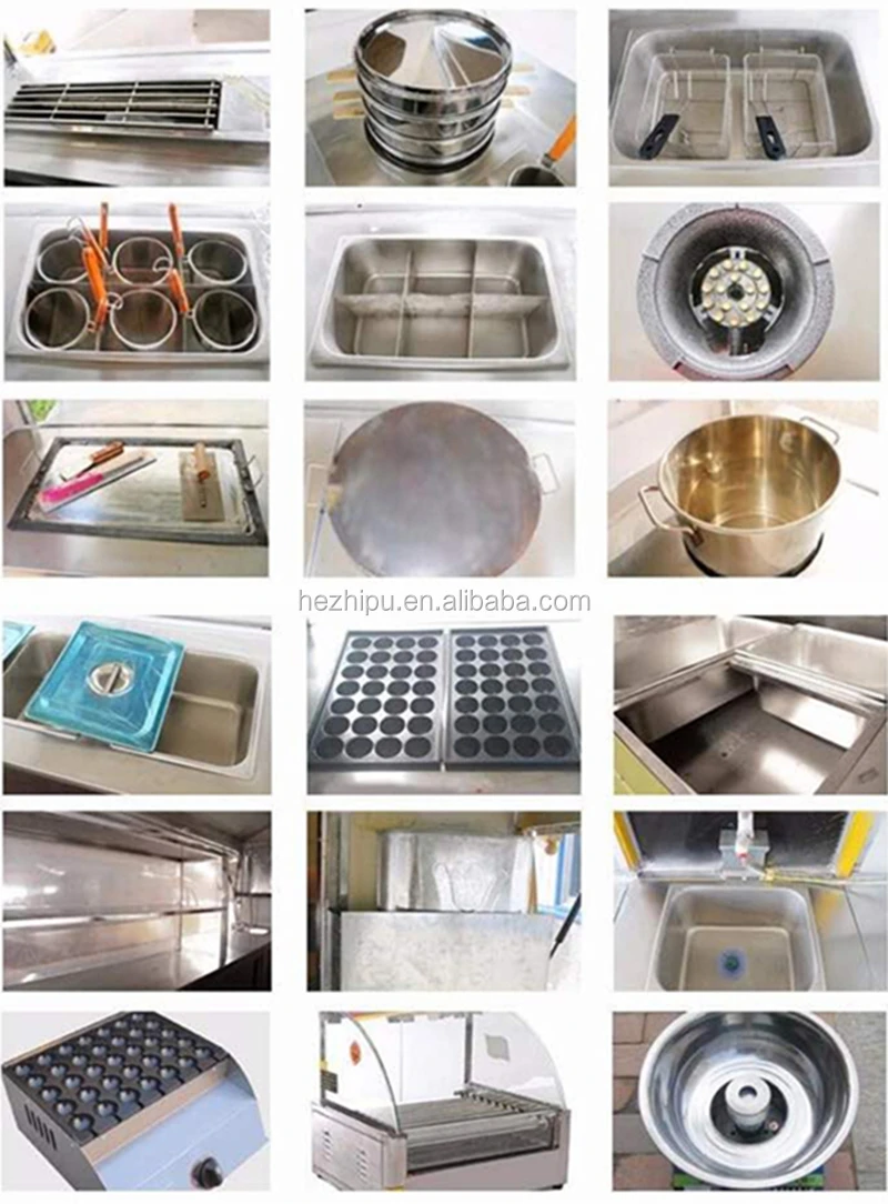 | Cooking Equipment | Can be customized, such as fridge, freezer, fryer, griddle, hot dog, pop corn, Exhuast hood etc |