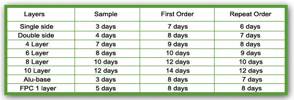 Delivery Time for PCB board: