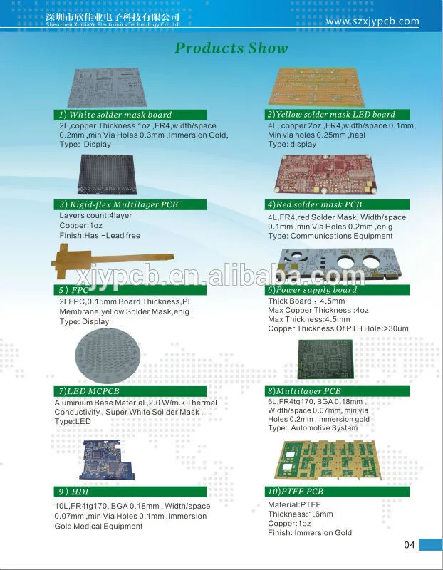 Shenzhen XJY Company is a professional pcb manufacturer has over 10 years experience;we are able to offer customized pcb ranging from pcb board, aluminium pcb, flexible pcb, high frequency pcb, components purchase, pcb assembly, pcb copy service;Our products are widely used in communication apparatus, automobile electronics, auto parts, computers, medical devices, light systems, outdoor systems, network devices and consumer electronics class fields, ect;We understand that bringing a product to market in a timely and cost effective manner can mean everything in business. Our quality, experience, service and pricing combine to become your efficient and reliable electronic PCB supplier.