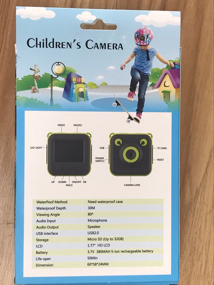 | Type: | Kids camera; | Screen: | 1.77" TFT screen; |