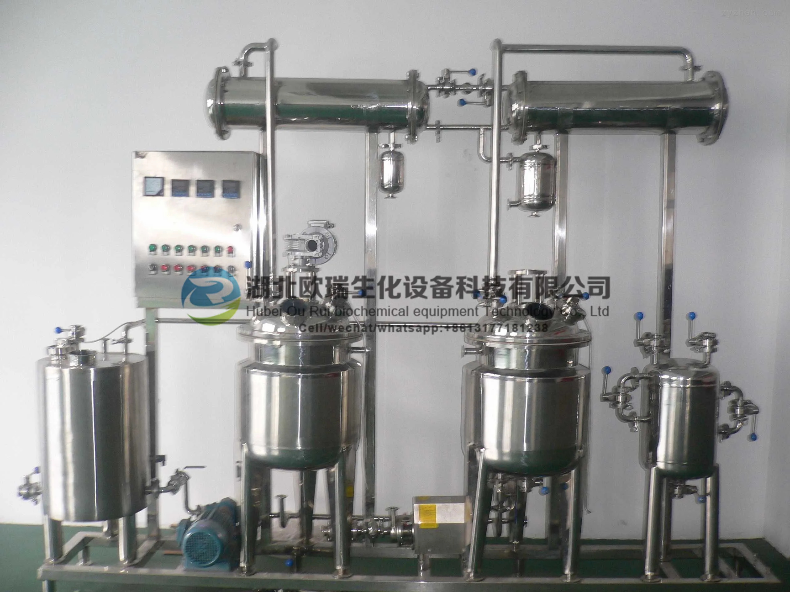 2. The equipment is equipped with: vacuum pump, liquid pump, filter, receiving tank, control cabinet and other accessories.The equipment is steam heating and electric heating respectively. After purchase, the equipment can be used only after being connected with water, electricity or steam.