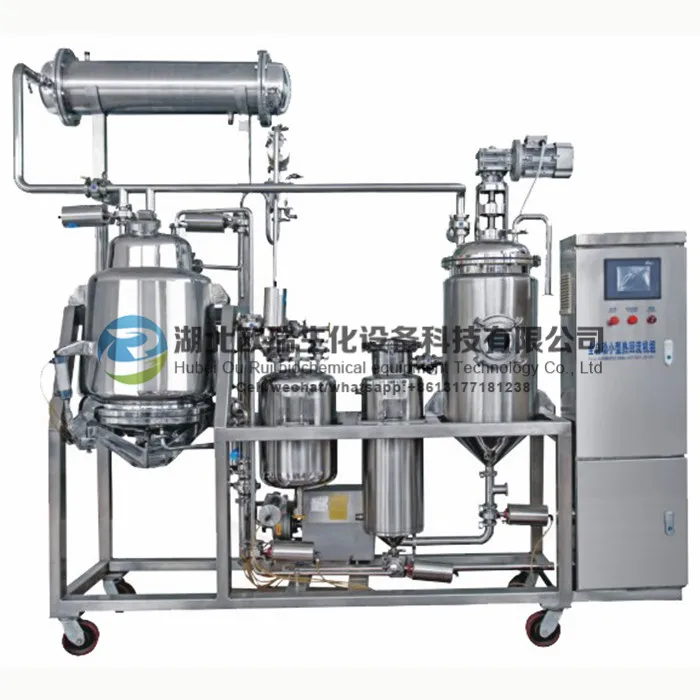 The unit is a new product developped by our company, it integrates extraction, vacuum concentration and solvent recovery, simplifies the operation procedure. Meanwhile, the whole extraction, concentration and recovery is finished in the enclosed flow path, avoiding the leakage. It uses electric lift discharge, improves the working environment, reduces energy consumption. The contact part of the unit and the material is made with the stainless steel, resistant to corrosion and meeting the standard of the GMP.