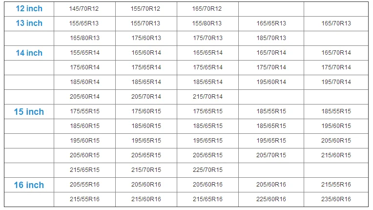 * More than 500sizes from 12-20 inches for the 1st step, including PCR,UHP, LTR, SUV,winter, 4*4 tires. More sizes of 20-26 inches will be available soon.