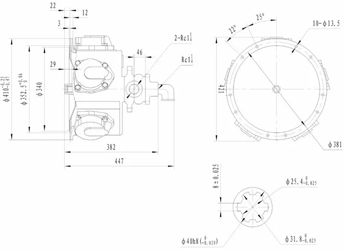TMH8 piston air motor is operated on the basis of the following principles. After entering into the air distribution system(valve core and valve sleeve), the compressed air is accordingly delivered into cylinders, expanding to push the piston reciprocating; the pistons then drive the shaft and crank journal reciprocation and finally output driving power.