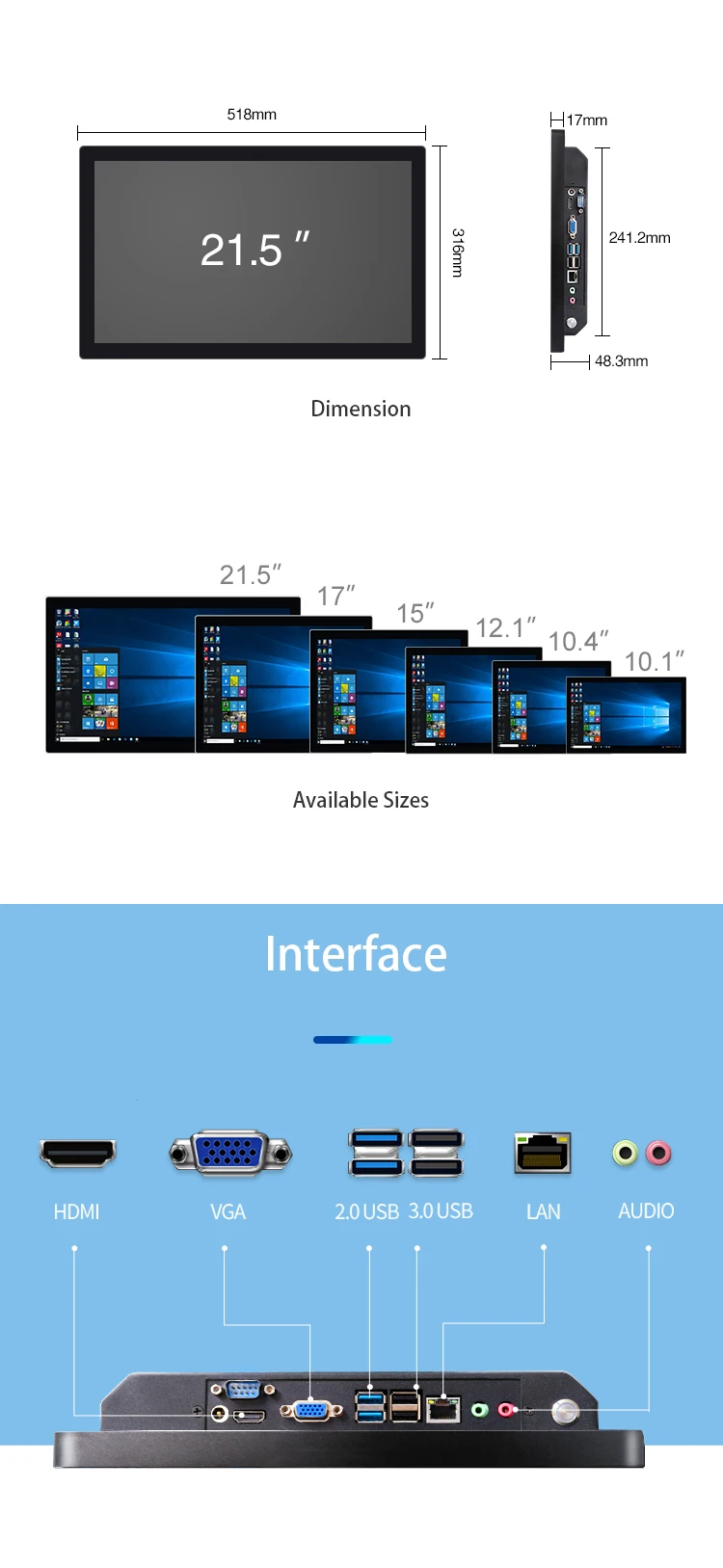 Our All-in-one touchscreen PC monitor = HD Screen Monitor+Touch screen+Audio System