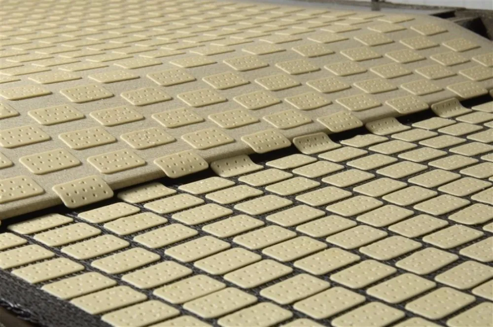 All working procedures that from dough mixing,feeding, sheeting, moulding, scrap recycling, baking,cooling to stacking can be completed automatically in one line.