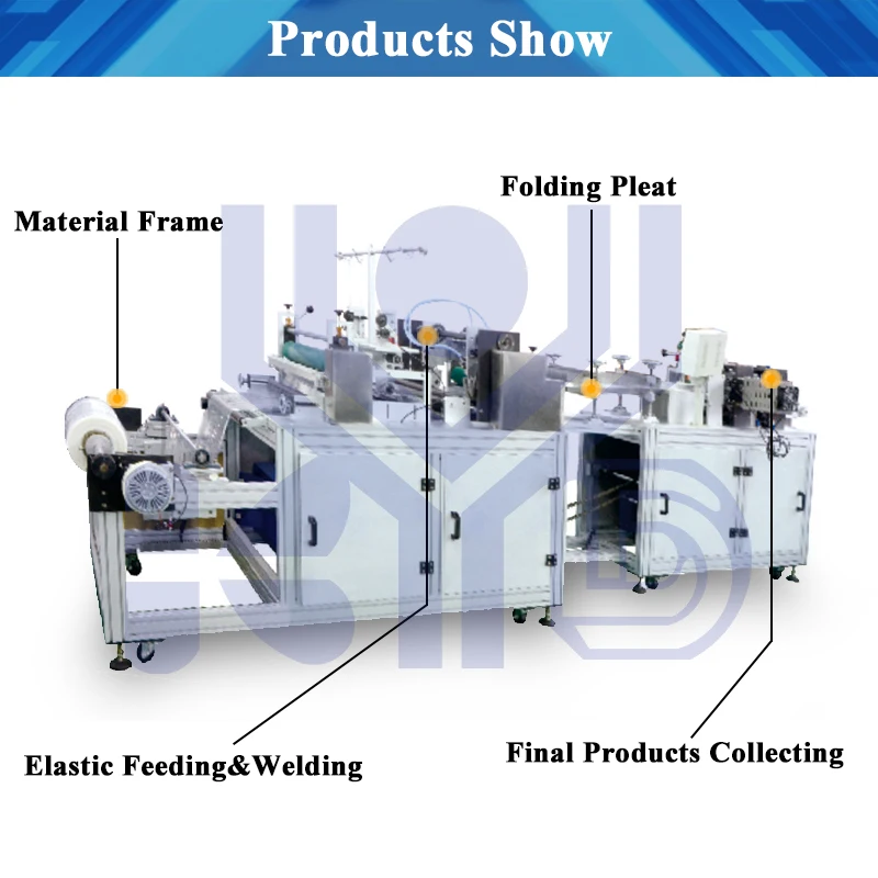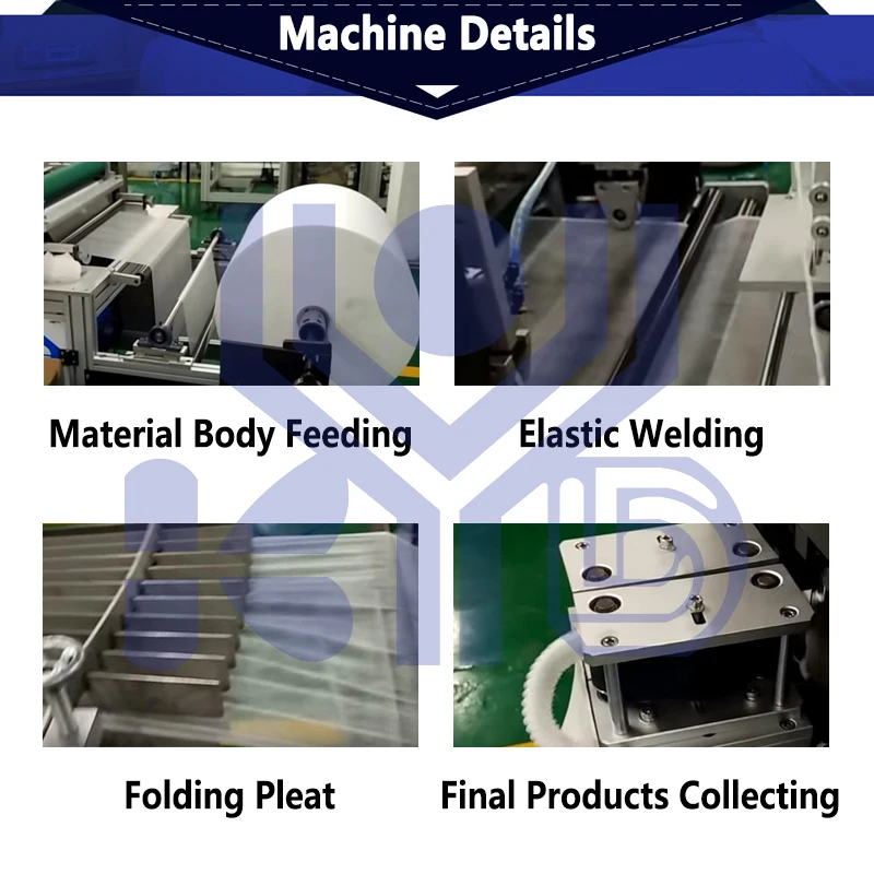 The machine adopts advanced ultrasonic welding to do non woven doctor cap by folding pleat.It is a fully automatic production machine from raw material supplying to finished products.With PLC system control,high stability and low failure.Import decelration brake motor effectively reduced the defective products.