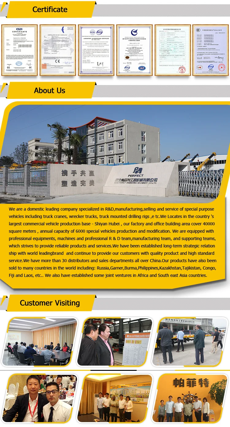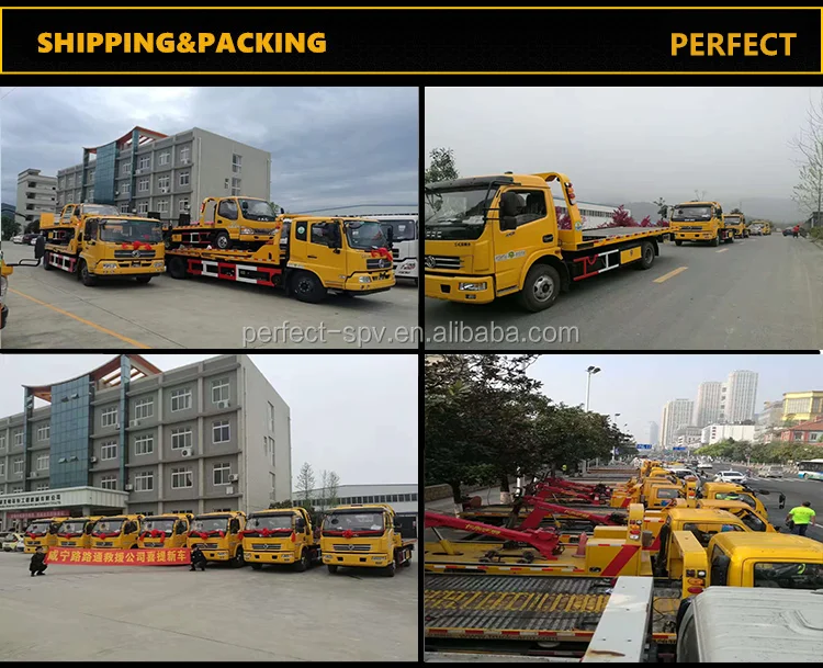 d) As a professional tow wrecker truck supplier in China, PERFECT towing trucks can meet all your demand. Right hand wrecker tow trucks, left hand drive wrecker towing trucks, 4x2 wreckers, 4x4 towing truck, 6x4 wreckers, 8x4 tow wrecker trucks,etc. In wrecker truck types, we produce flatbed tow truck, under lift wrecker truck, rotator towing truck, full landing wrecker tow truck, etc.