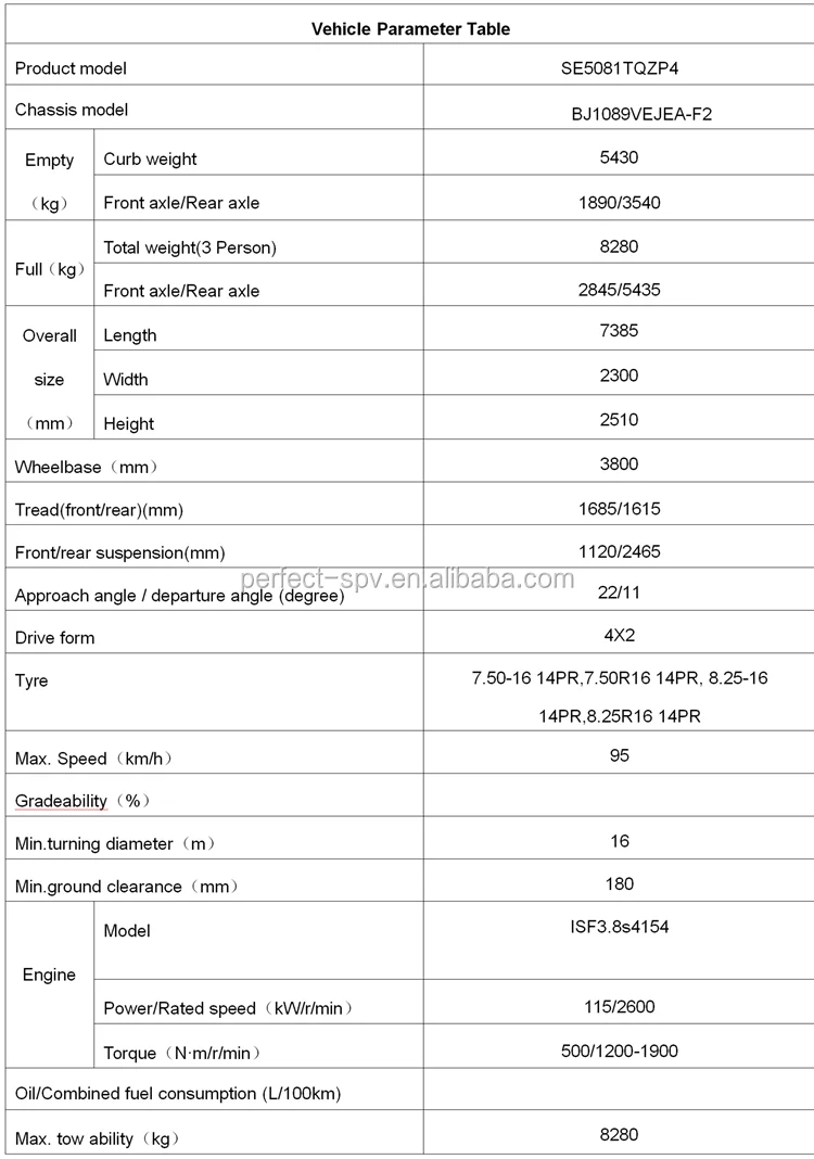 SE5081TQZP4 mini flatbed truck parameters: