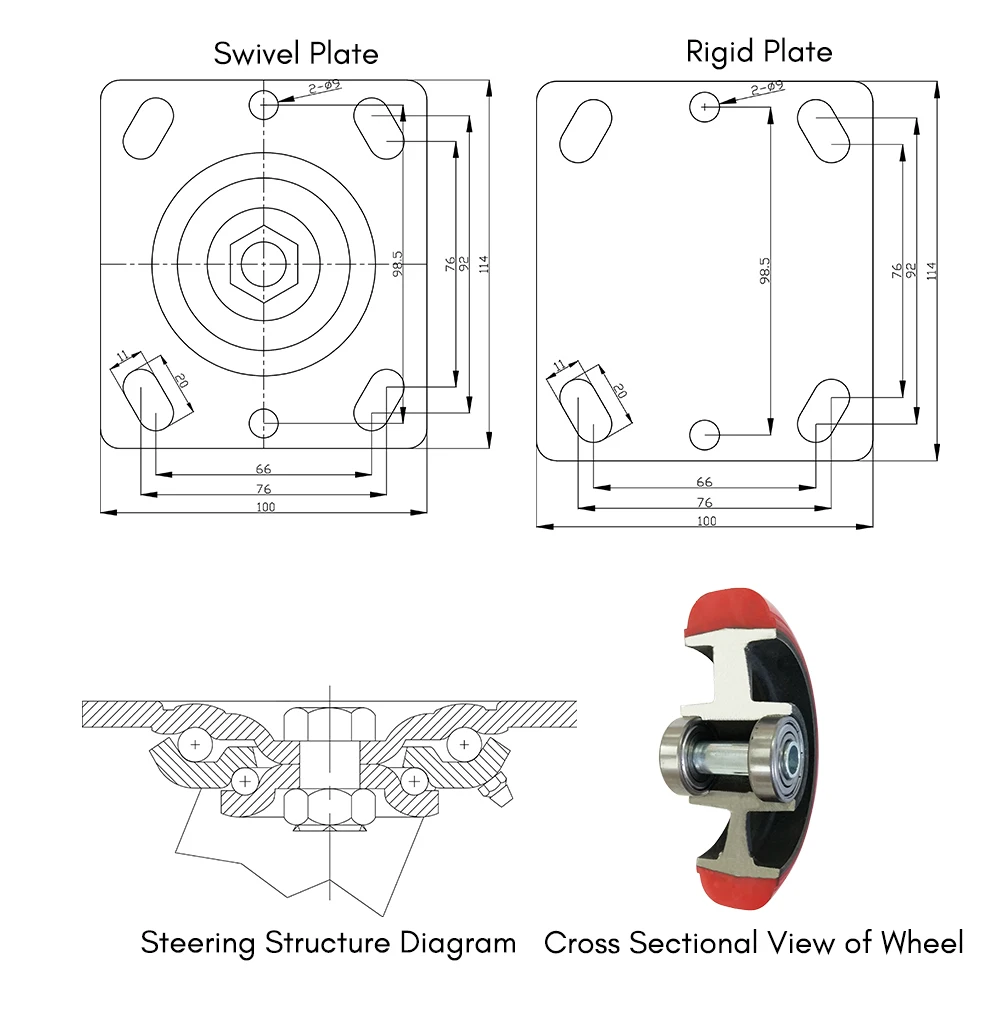 | Wheel Material: | Industrial Heavy Duty PU Caster Castor Wheels; | Model: | DS4040 UC; |