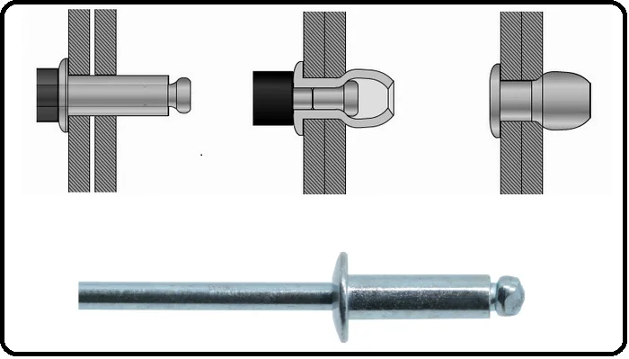 Blind Rivets are high strength one piece break-stem fastener that require access from one side only. They are available in various materials such as Aluminum alloy, Steel and Stainless Steel in a variety of lengths & diameters. Also they are available in various head forms - Dome Head, Countersunk and Large flange to suite applications where wide load spread or flush surface is required.