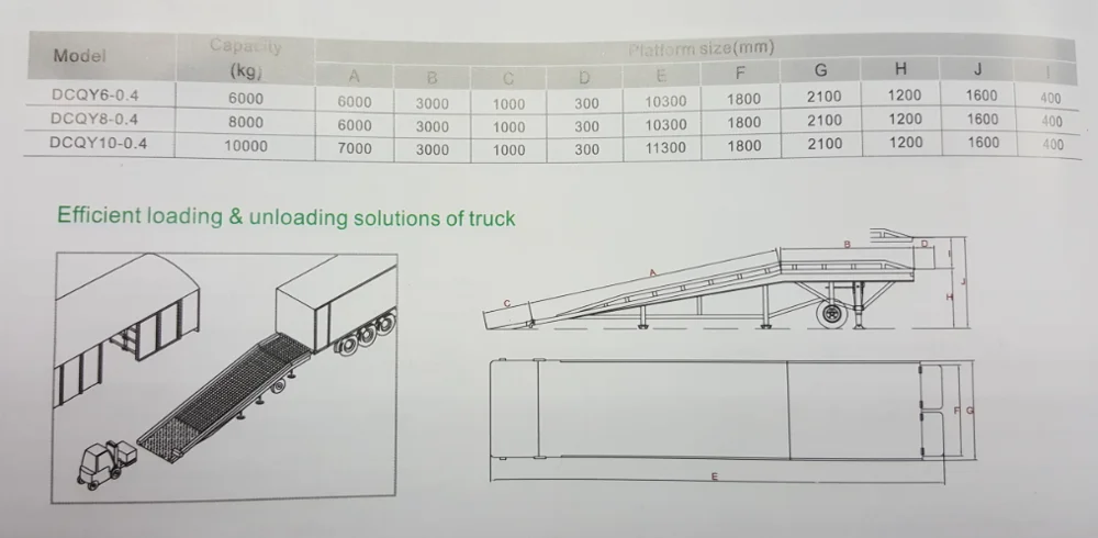 Movable dock ramp is special accessory equipment which can realize rapid loading and unloading the goods, forklift and other handling trucks can directly come into the carriage to quickly load or unload goods, the working efficiency is greatly increased.